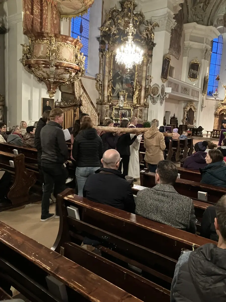Gegen Ende der Andacht konnte jeder der wollte, eine kleine Kerze mit seinen persönlichen Anliegen an Jesus neben dem am Boden liegenden Kreuz ablegen.
