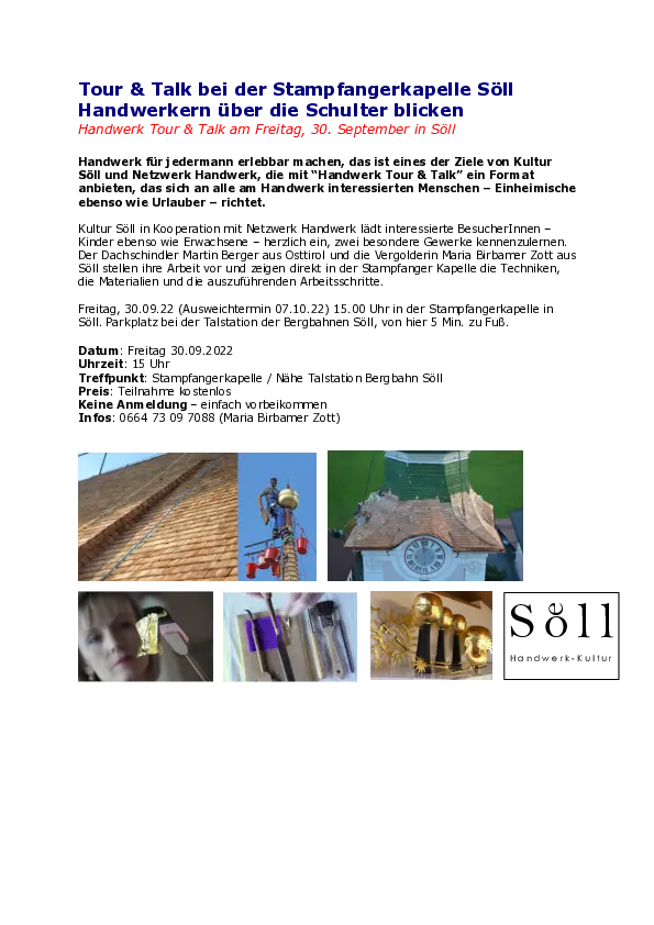 Freitag, den 7.10. 2022 an der Stampfangerkapelle um 15.00 Uhr!   kostenlos !!!