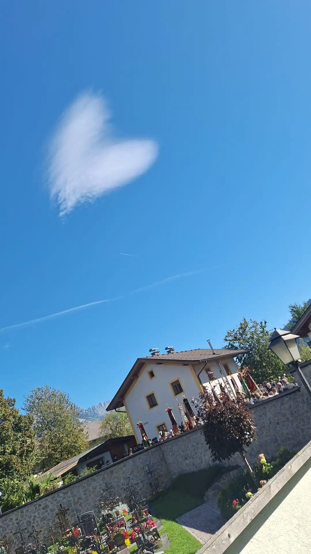 eine würdige Beerdigung in Westendorf unter Beisein vom Weihbischof und vielen Priester-Kollegen…….und am Ende des Abschieds-Gottesdienstes in Söll ein Liebes-Gruß von Sepp “von oben” …. vor dem Pfarrheim am Sonntag, den 21.9.2025, mittags, ein Föhn-Tag ….man achte auf die Fahnen-Abordnungen vor dem Pfarrheim, das “Herz-Bild” ist KEINE Fotomontage …es gibt sehr viele (beeindruckte!) Augenzeugen ….