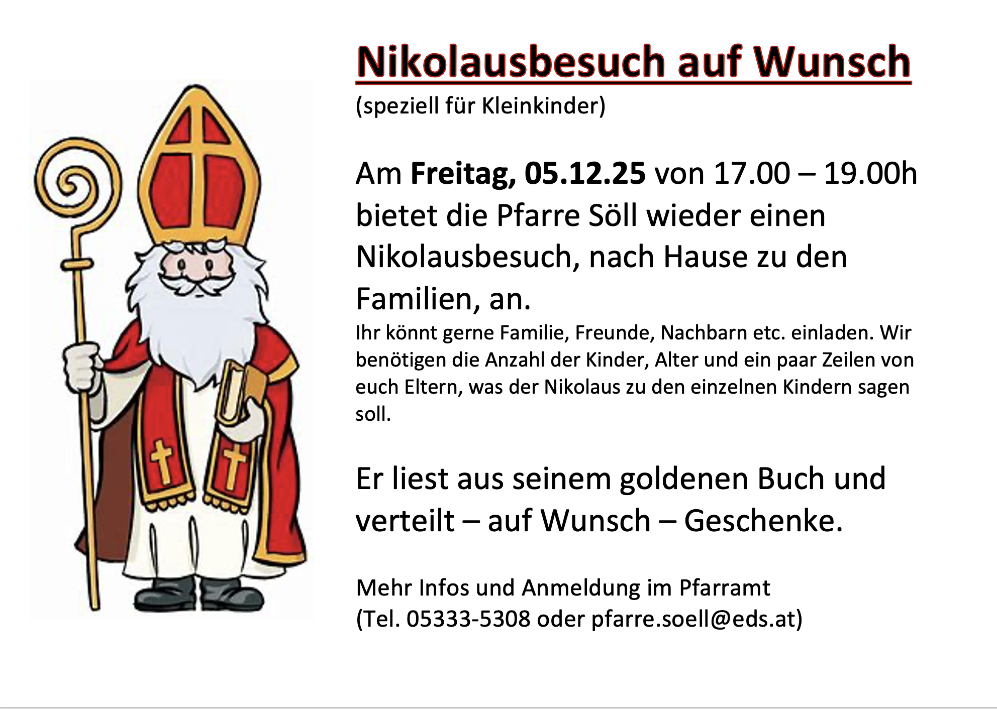 Gerne würde einer unserer beiden Nikoläuse bei Ihren Kindern auf Besuch kommen, nur: bestellt muß er werden!