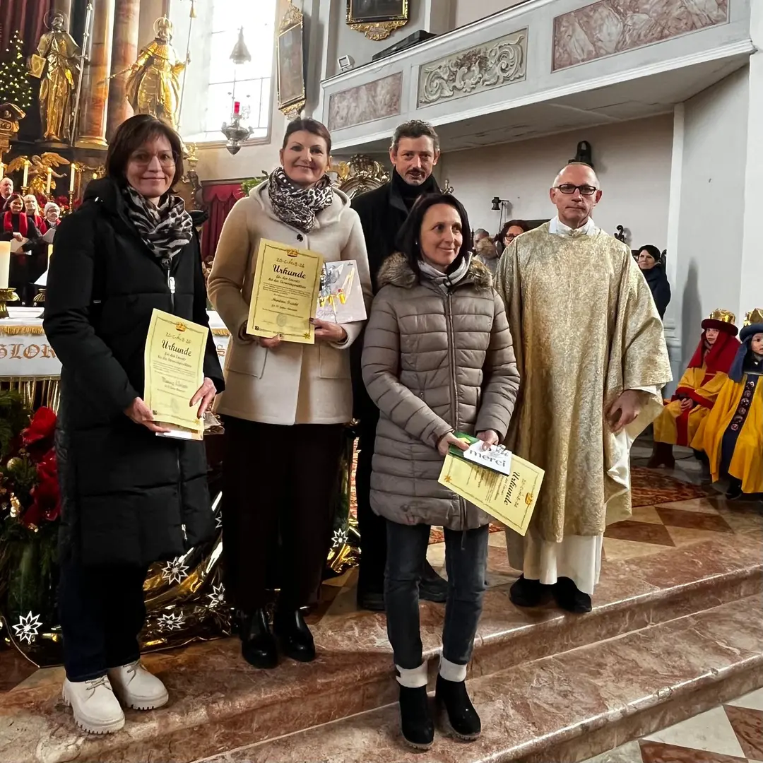 Die Dreikönigs-Sternsinger-Aktion 2026 zeigt einen neuen Spenden-Rekord in Söll: EUR 20.500,- konnten “ersungen” und nach Tansania für dortige wohltätige Zwecke überwiesen werden. Ein herzliches Dankeschön an alle Sänger/innen und Begleiter/innen für das tolle Engagement! Bei einem feierlichen Gottesdienst am Dreikönigs-Tag mit würdevoller musikalischer Untermalung wurde den langjährig Beteiligten der Dank durch Pfarrer Adam Zasada ausgesprochen.