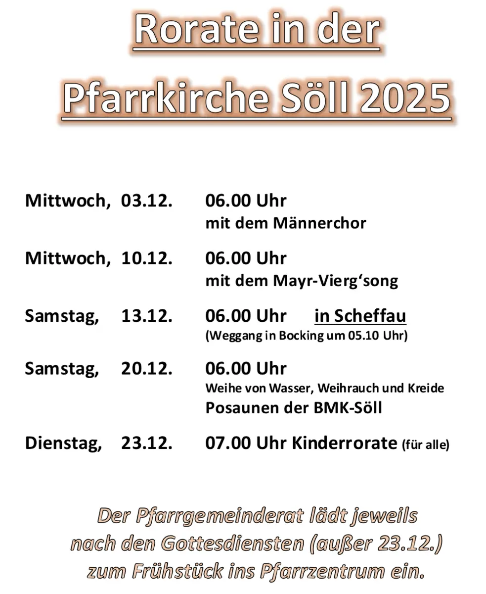 Rorate-Termine in der Vorweihnachtszeit 2025