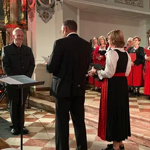 Der Abschluß der heurigen Konzertreihe in der Pfarrkirche Söll wurde mit einem gut besuchten Chorkonzert gefeiert. Der “Projektchor Firmung ” und der Kirchenchor Scheffau mit Solisten und Instrumentalisten waren stimmstarke Gäste, der Kirchenchor Söll bot den harmonischen Hintergrund, der frische ELKI-Chor setzte dem Konzert die Krone auf. Das “Trio Stimmfest” überraschte mit einer feinen Einlage. Klaus Egerbacher bereicherte das Konzert mit Klarinette und Saxophon, eine beeindruckende Basis legte Johann Karg mit einem gepflegten Paukensolo zum Einzug des Kinderchores. Pauke und Orgel verstärkten auch die gemeinsam gesungenen Stücke zu einem beeindruckenden Klangkörper. An den Tasten: Salina Lackner, Veronica Niederacher, Werner Reidinger